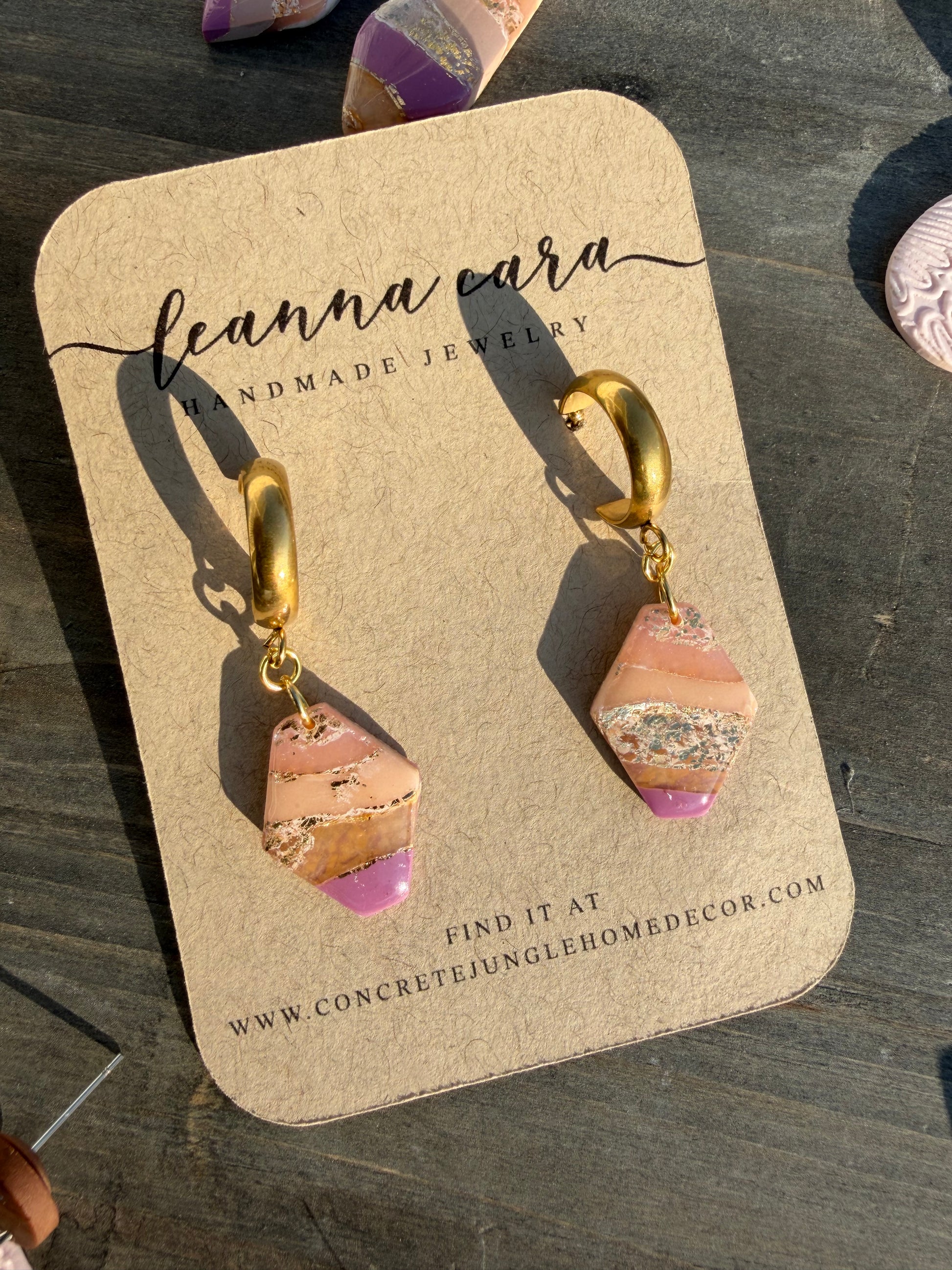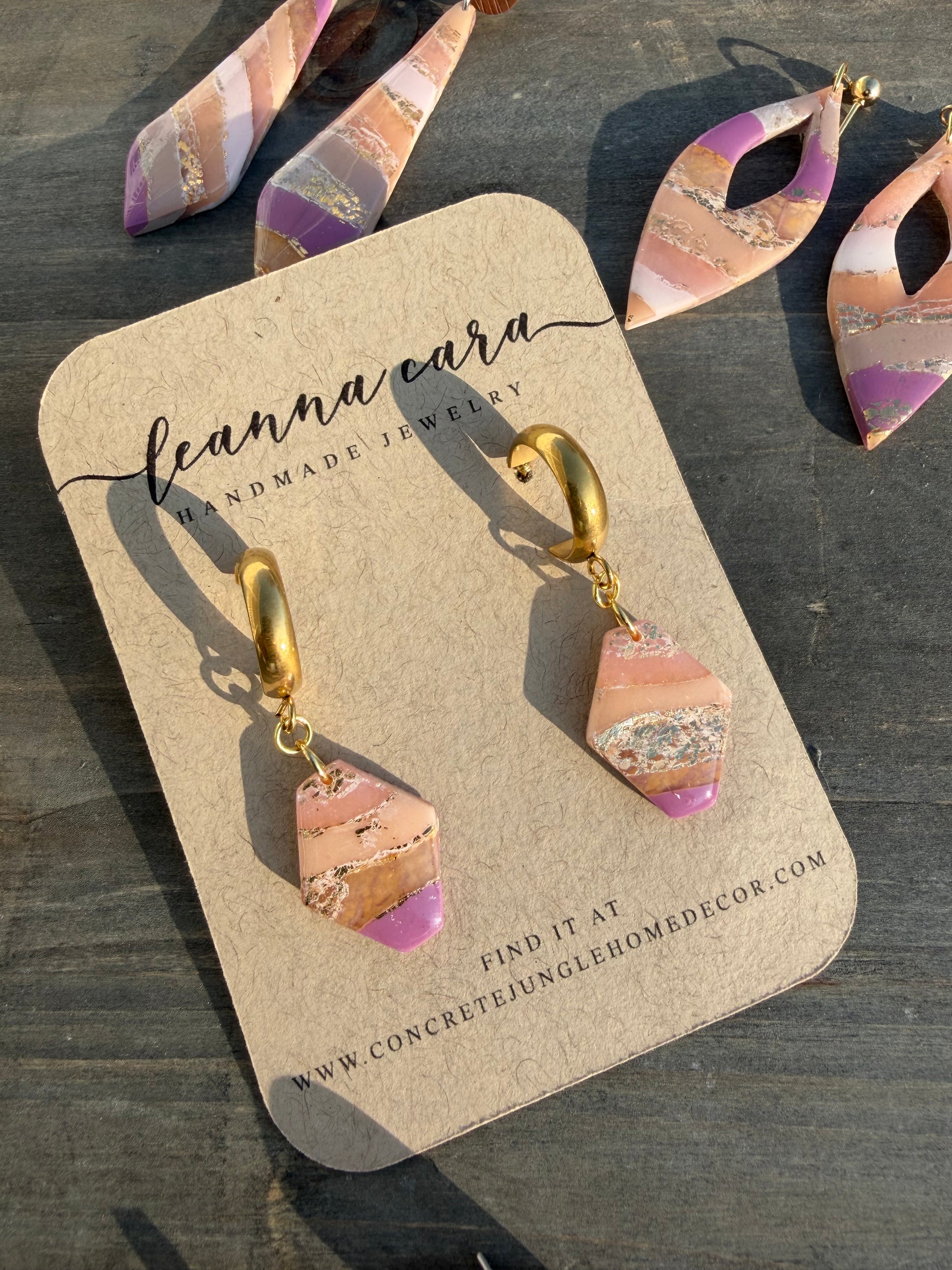 Handmade Polymer clay earrings made with gold plated stainless steel posts and findings. Hypoallergenic.